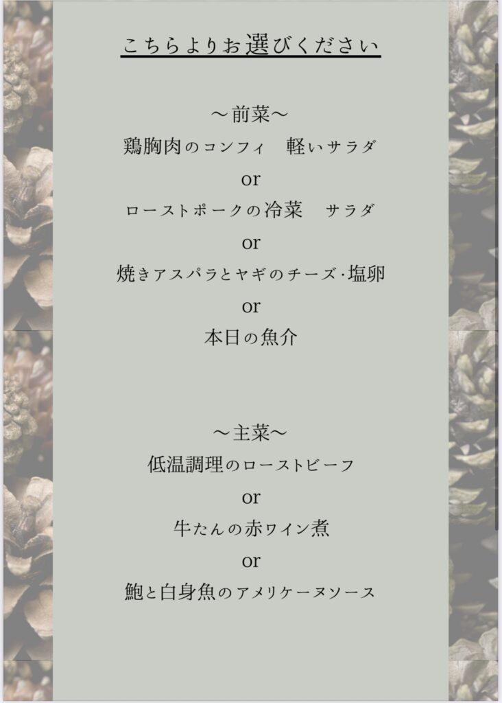 ディナーメニュー